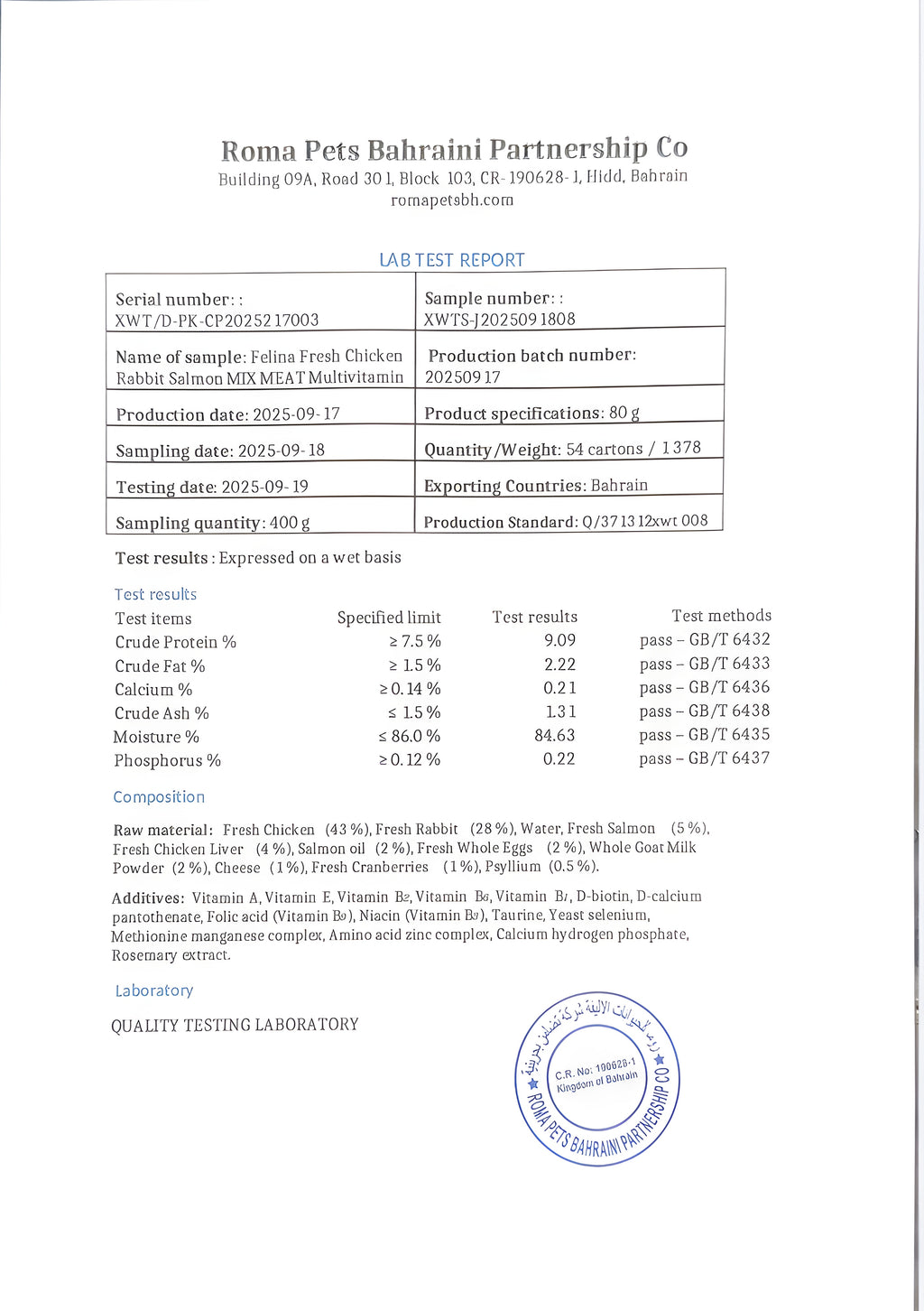 MULTIVITAMIN WET FOOD.
